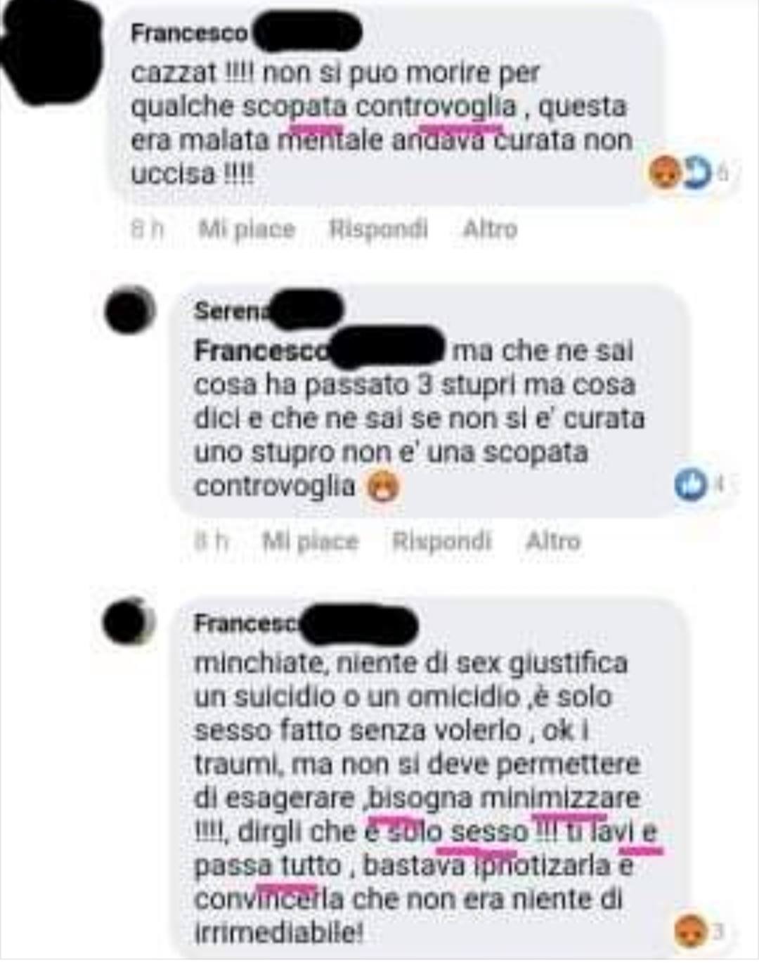 Al di là dell’opinione sulla sua scelta (che dovrebbe restare comunque a lei e nessuno dovrebbe permettersi di giudicare), la cosa più disgustosa di questi commenti è come costui considera uno stupro fatto ad una bambina di 11 anni: “solo sesso controvoglia”.