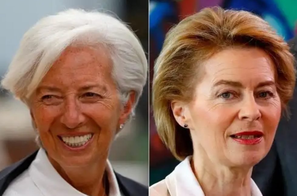 La popolare tedesca Ursula von der Leyen alla Commissione Europea e la francese Christine Lagarde alla Banca Centrale Europea.