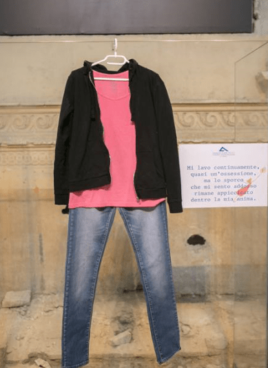 Questo il racconto di una ragazza vittima di stupro nella mostra «Com’eri vestita?» realizzata dal Centro Antiviolenza Cerchi d’Acqua nella True Art Gallery, a Milano.