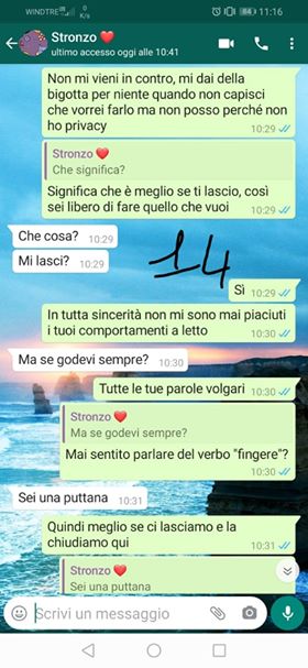 Lei si lamenta perché lui ha passato tutta la sera a mandargli messaggi volgari e lui inizia ad insultarla: