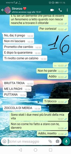 Lei si stanca di tutta la sua volgarità e insistenza, decide di lasciarlo e lui inizia con insulti ancora più pesanti: