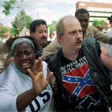Ad un tratto però, qualcuno si accorse che in mezzo alla folla c’era un uomo che aveva un tatuaggio delle SS e una maglietta confederata.