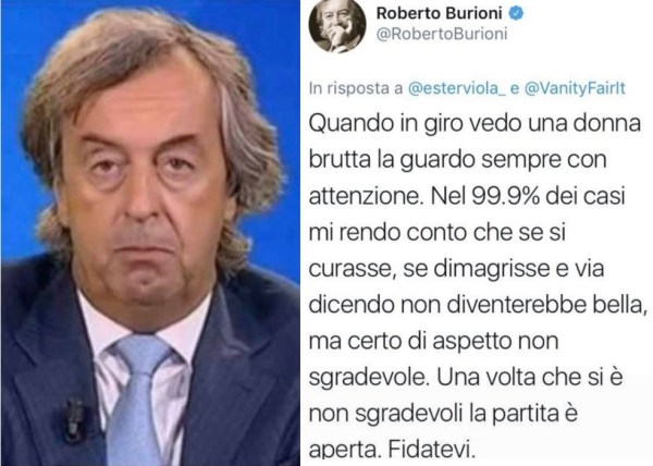 Cosa pensa Il Dott. Burioni delle donne "brutte" Il Dott. Burioni è un medico diventato noto per il suo lavoro divulgativo sui vaccini e, ultimamente, sul coronavirus. Burioni quindi si occupa di salute e di scienza, non è un presentatore di Miss Italia. E queste sono le sue esternazioni: “Quando in giro vedo una donna... Continua a leggere →